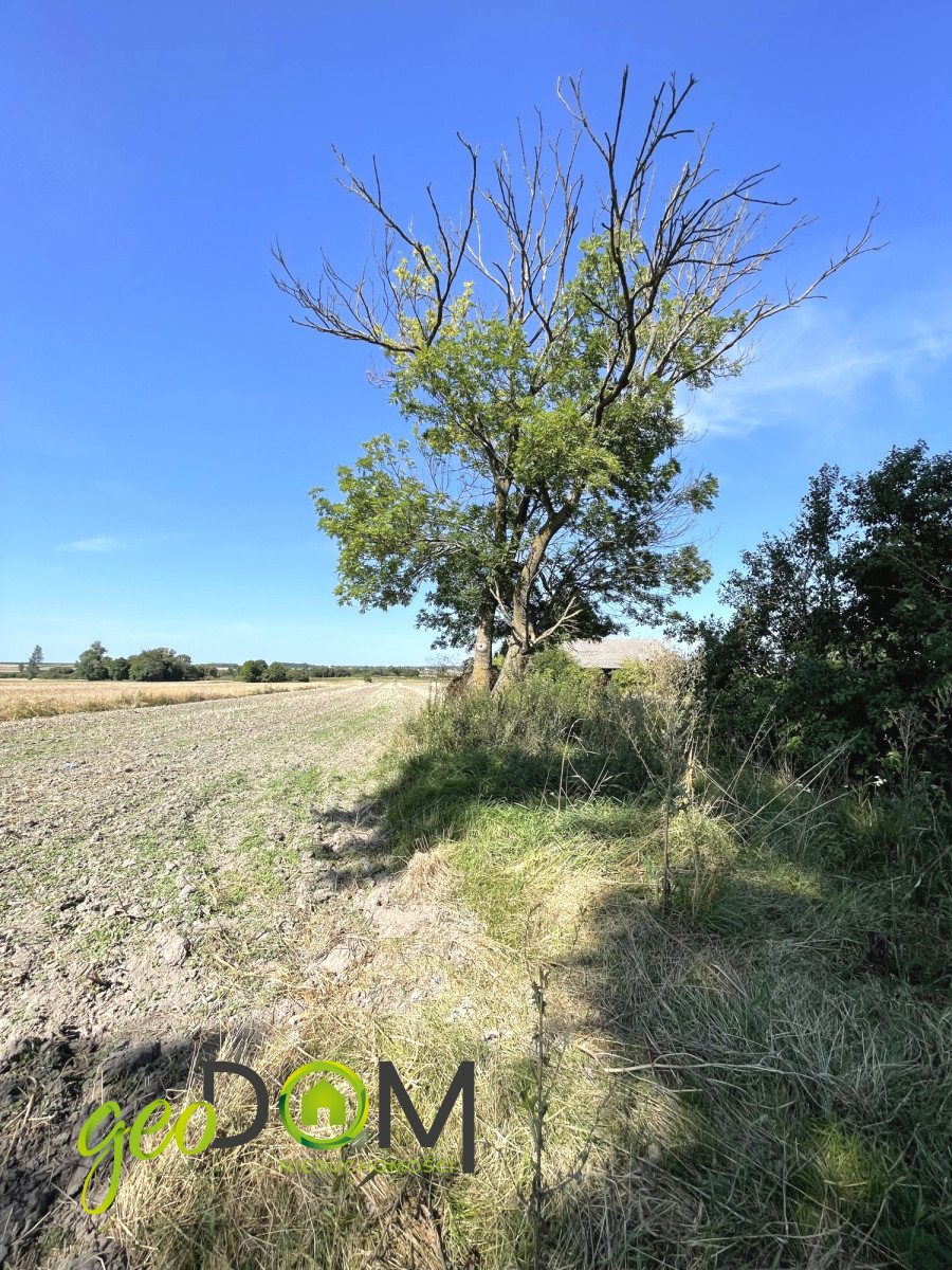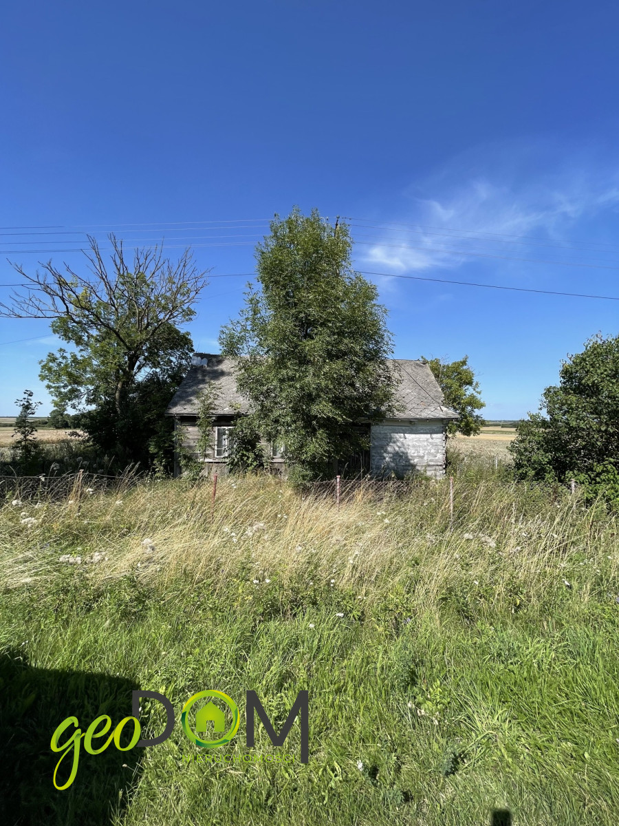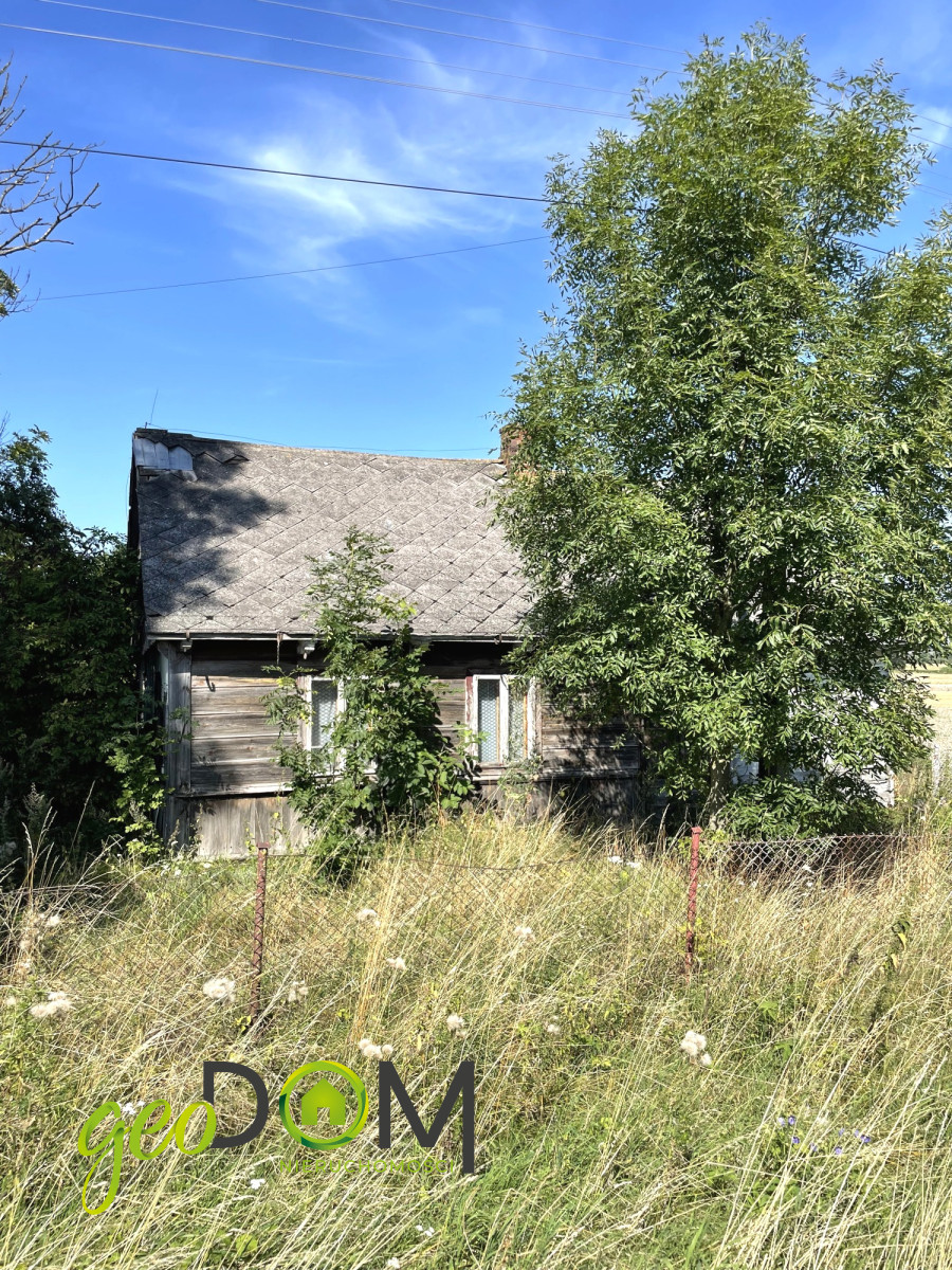 Na działce znajduje się stary drewniany dom oraz stodoła.